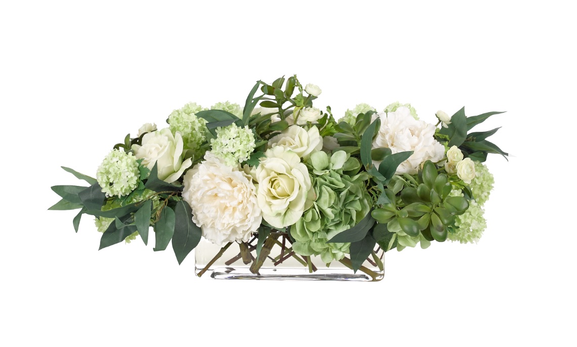 Цветы Роуз Гидрангея (Rose Hydrangea), в стеклянном кубе