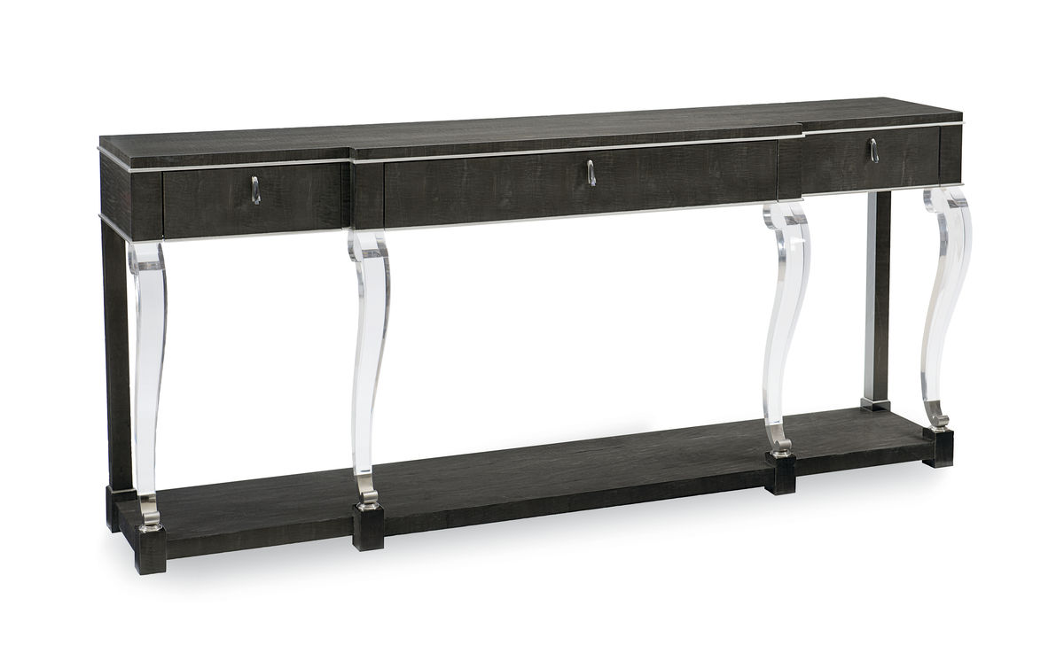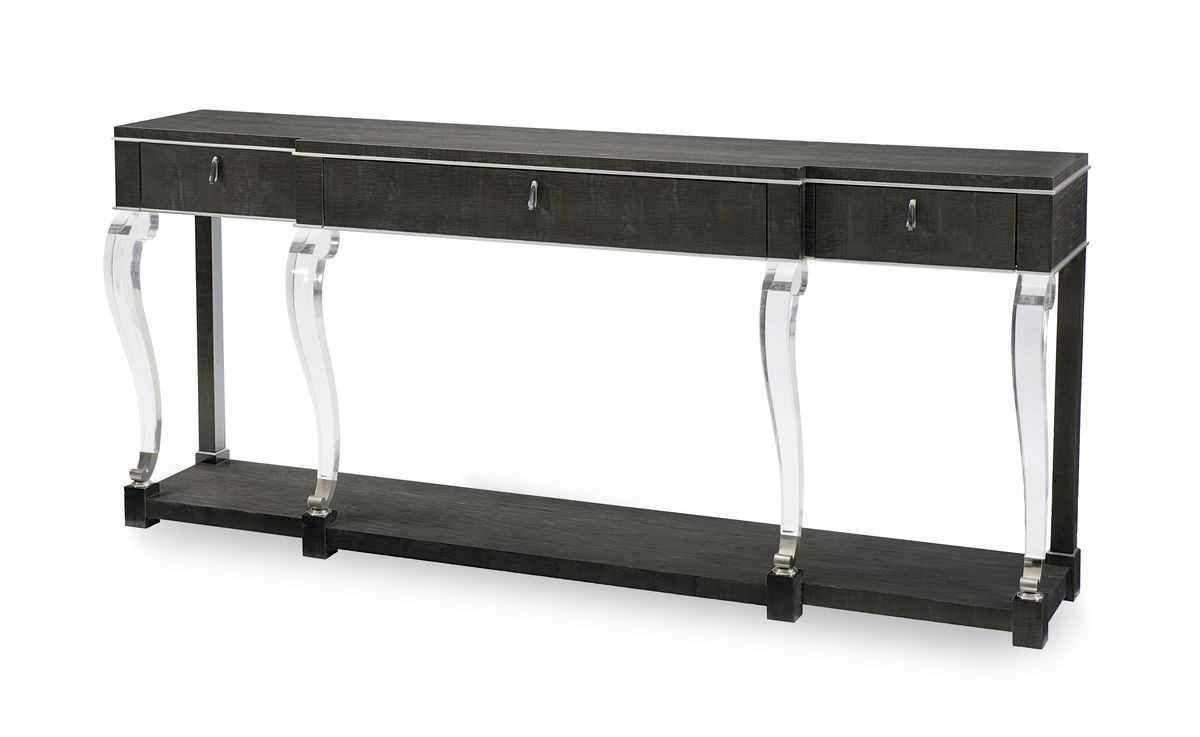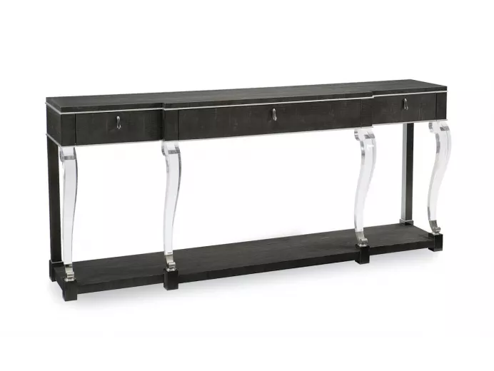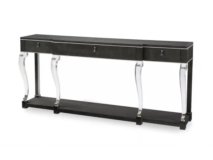 Эта консоль добавит изысканности в пространство благодаря изогнутым ножкам из акрила, контрастирующим с тёмной отделкой Midnight Maple и металлическими акцентами в полированном хроме, создавая образ вечной современной элегантности. |