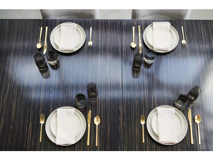 Эбен с выраженной полосчатой текстурой, полупрозрачное бронзовое металлизированное покрытие |