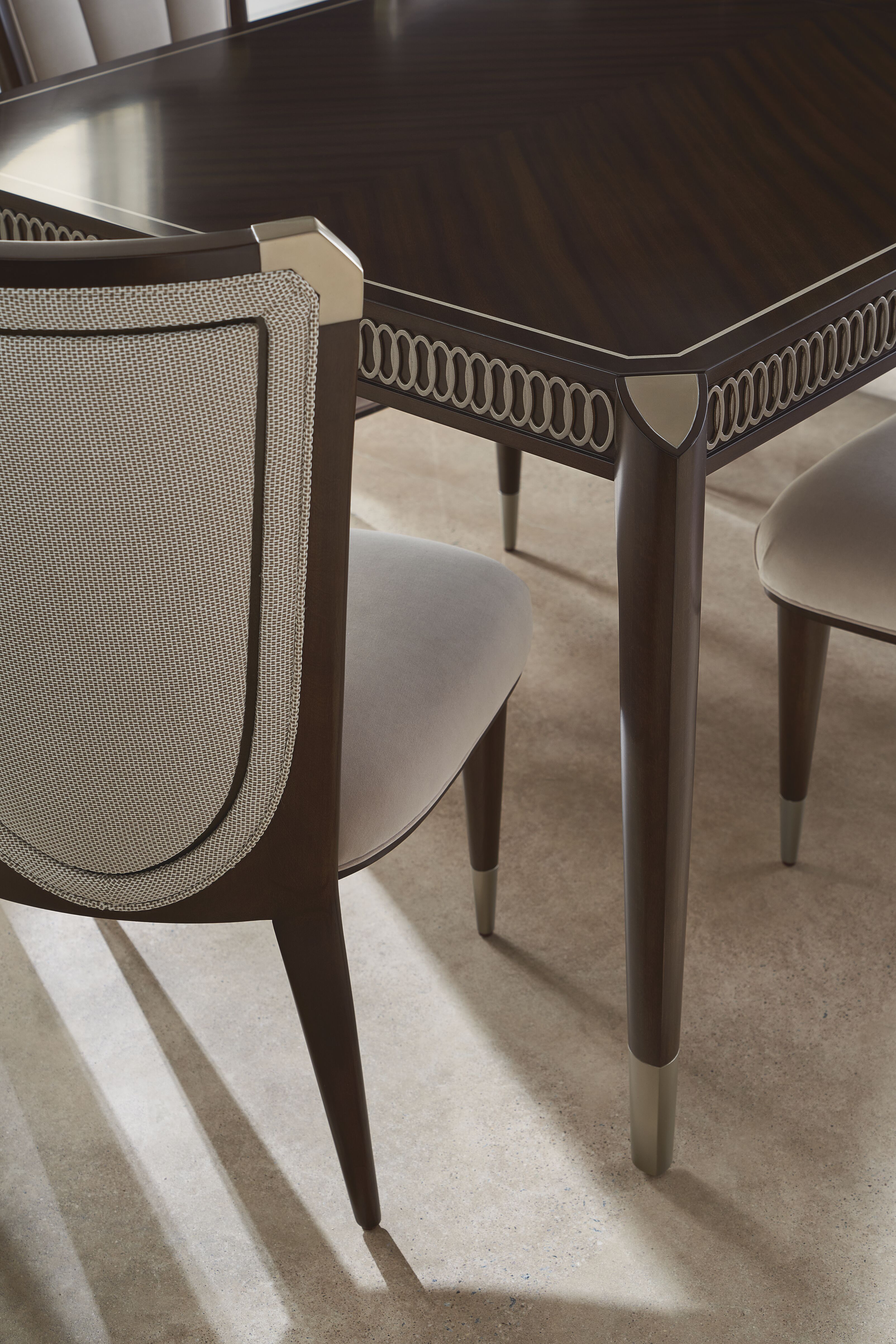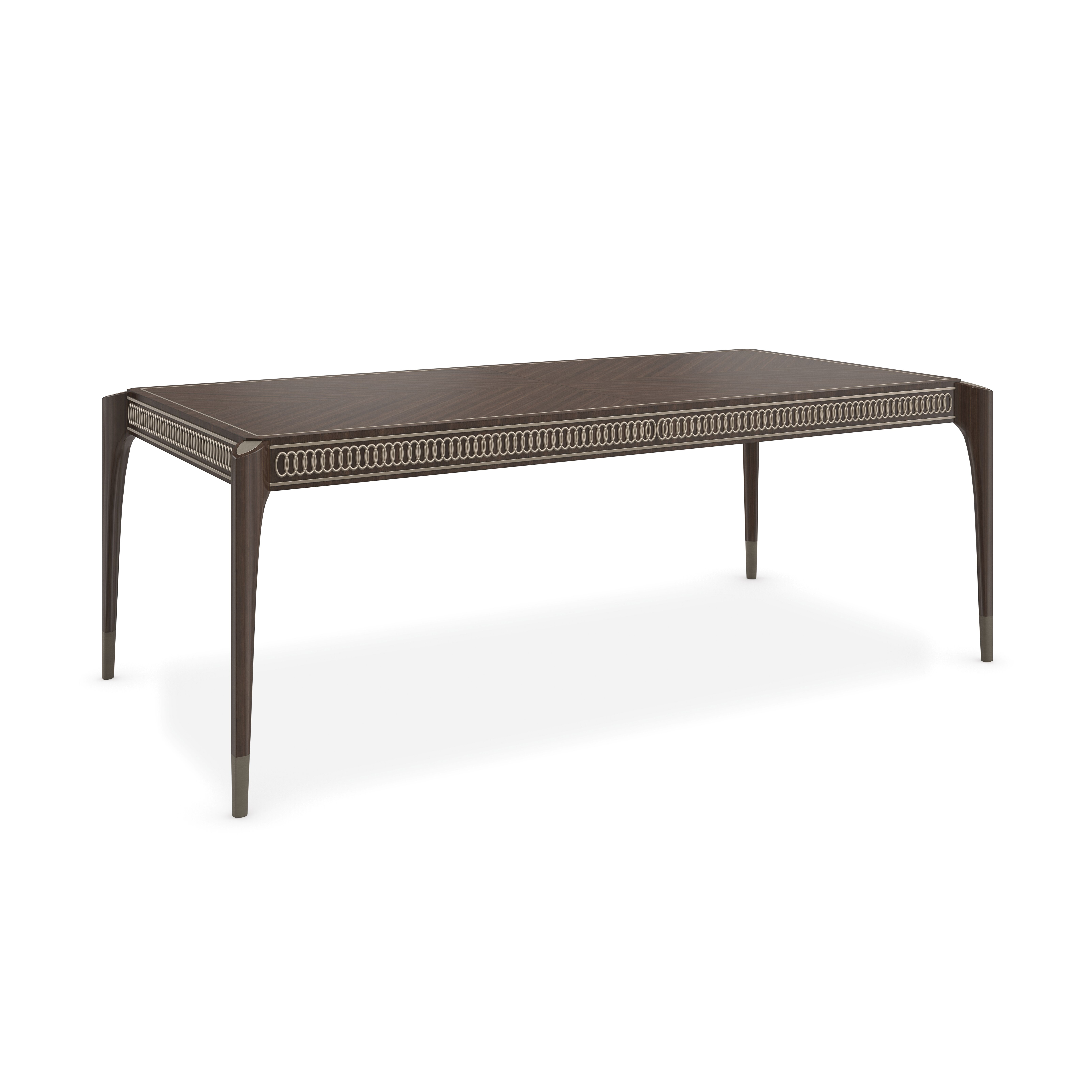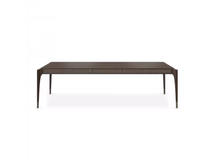 Обеденный стол Oxford выглядит особенно изысканно благодаря отделке Stallion, которая подчеркивает красоту древесины сапеле, а также резным украшениям на его фартуке и металлическим ножкам. |