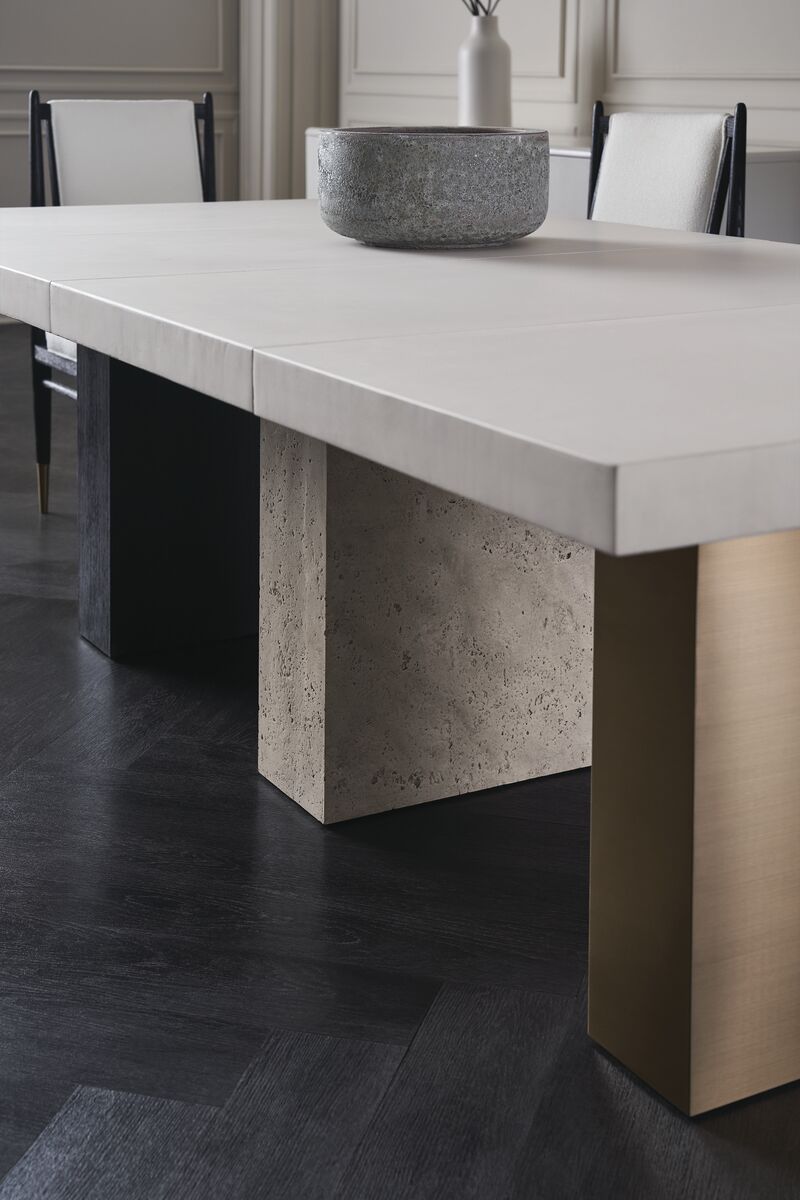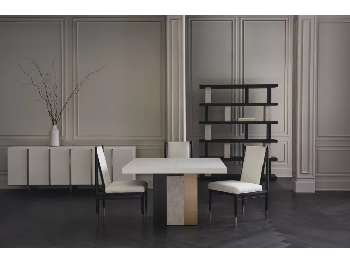 Стол оснащен двумя вставками, благодаря которым его длина увеличивается до 244 см, вмещает до 10 человек. |