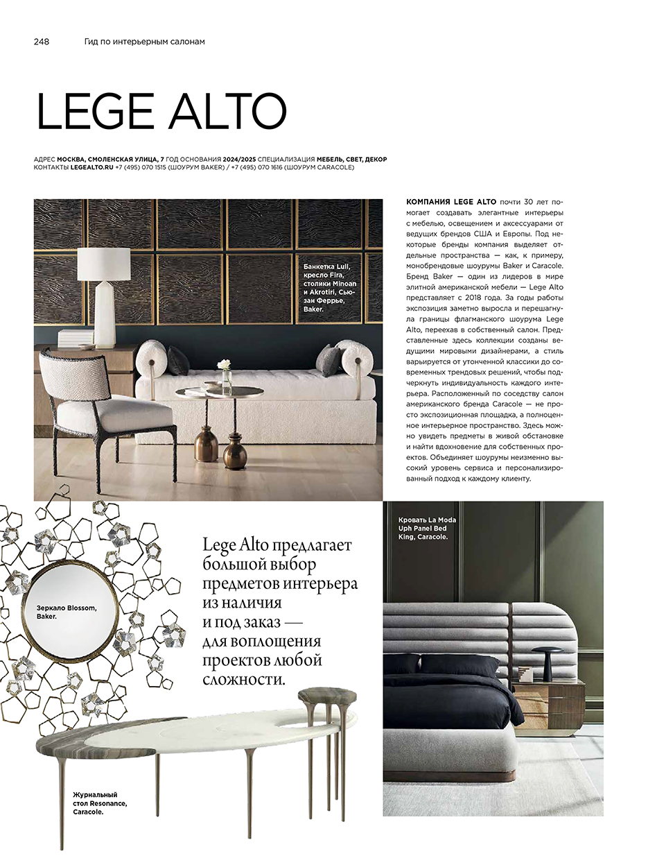 В наших шоу-румах представлены ведущие мировые бренды — Caracole, Baker, Theodore Alexander, Global Views, Bernhardt, Trowbridge, Taschen, Assouline и другие. Мы отбираем коллекции, в которых сочетаются стиль, качество и актуальные дизайнерские решения.