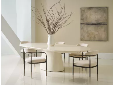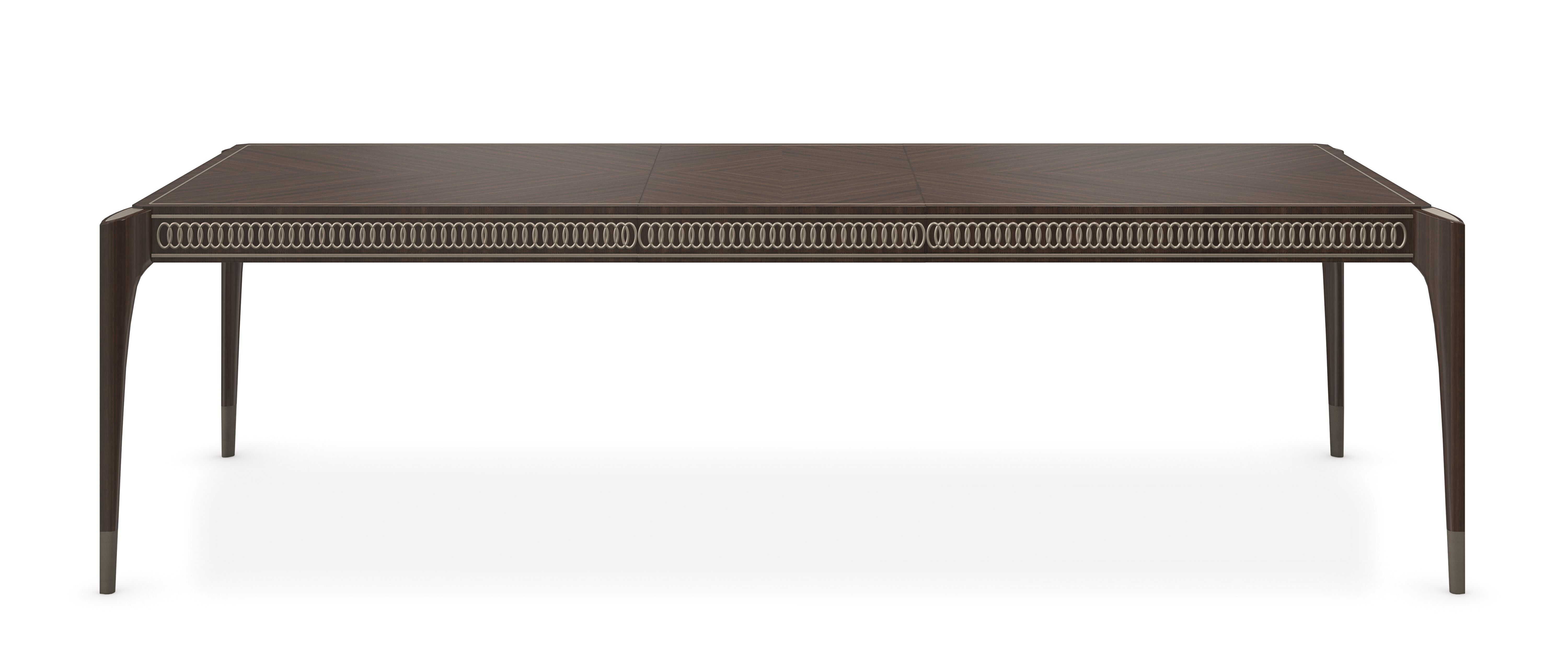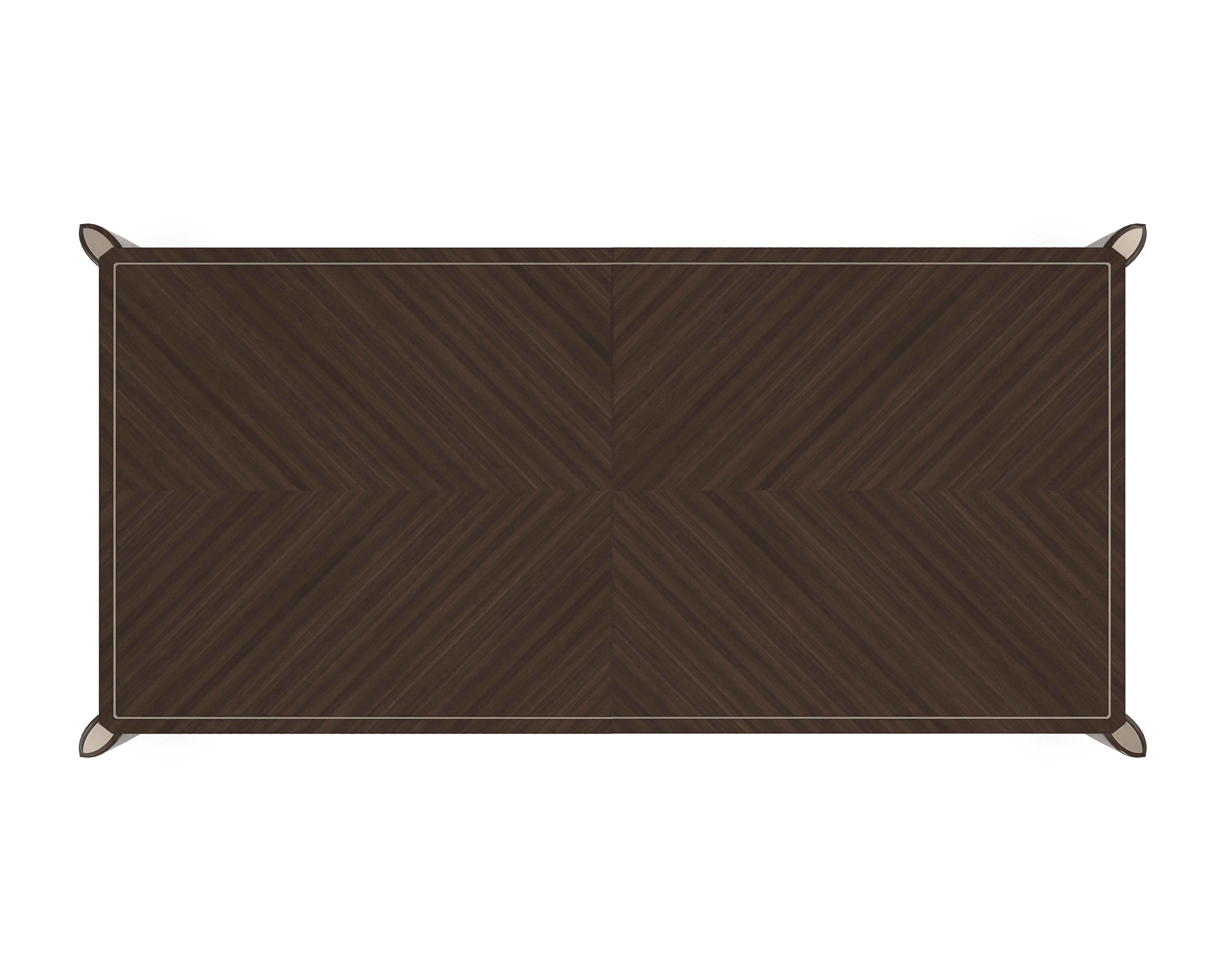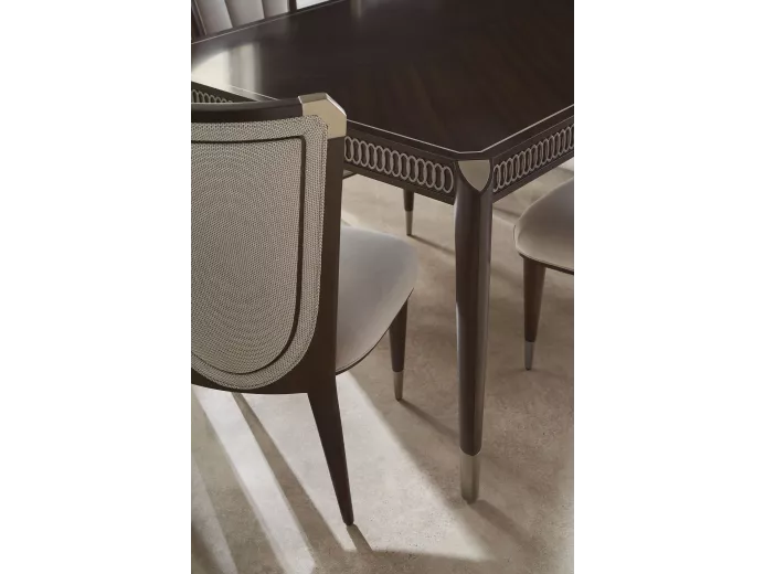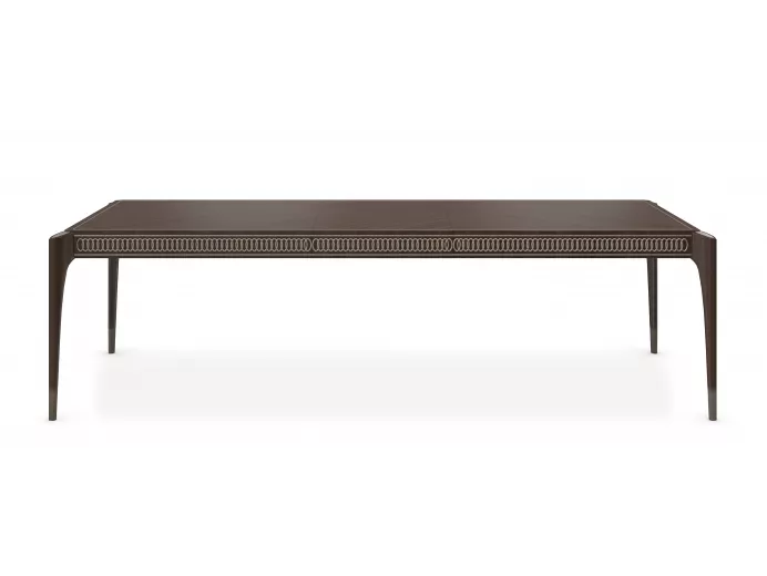 Обеденный стол Oxford выглядит особенно изысканно благодаря отделке Stallion, которая подчеркивает красоту древесины сапеле, а также резным украшениям на его фартуке и металлическим ножкам. |